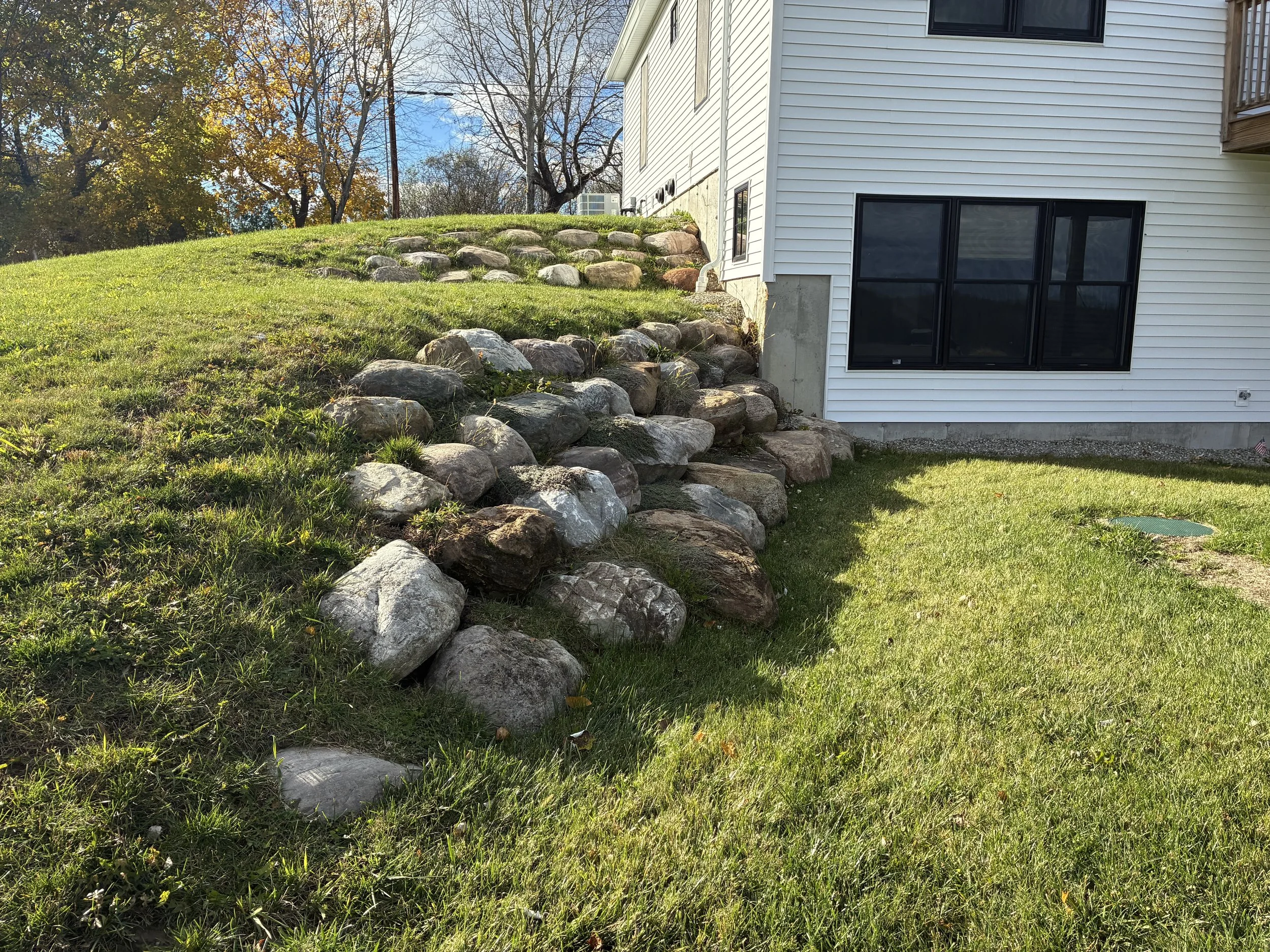 This build was particularly fun as I put on my excavator hat and had the opportunity to do the majority of the excavating, building of the septic system, grading and natural stone retaining walls - I do love playing with the big toys!